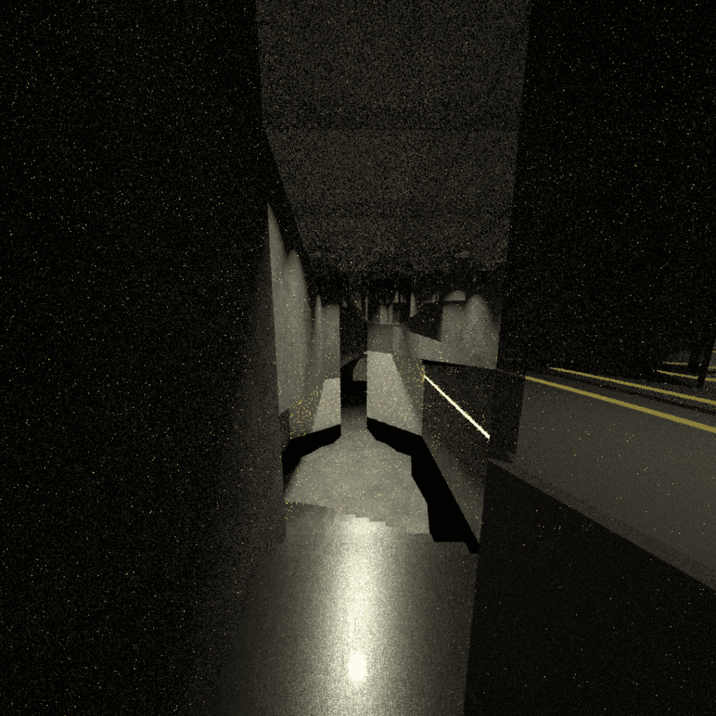 4 – Deuxième passerelle, plus en lumière, oeil vers l’avant. Toujours une idée de réflexion ‘post-oeuvre’.
