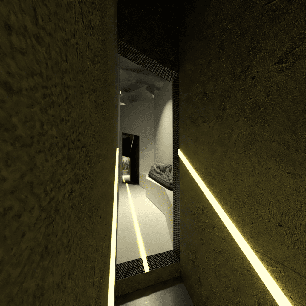 RÔLE ET CONTRIBUTION : Définition de l’expérience humaine artistique, recherches analogiques, recherche des oeuvres exposées, création des espaces, recherche de procédés architecturaux. Modélisation sur Sketchup, plans sur Autocad, rendus sur V-ray.